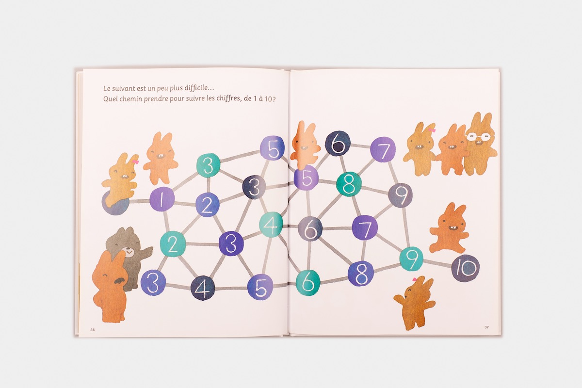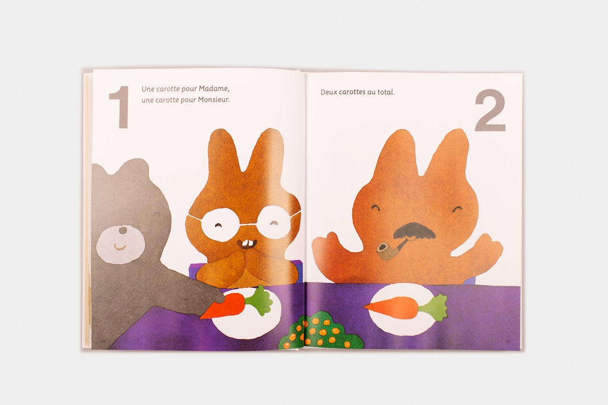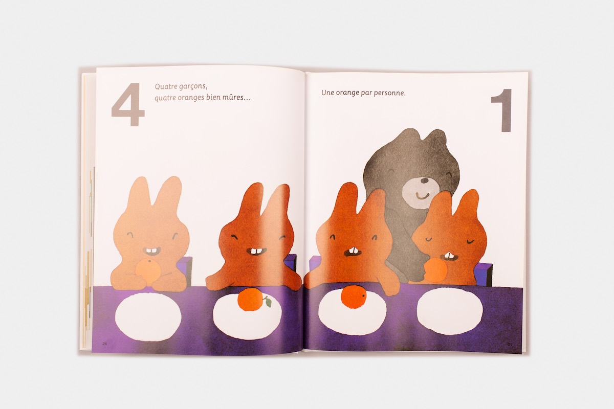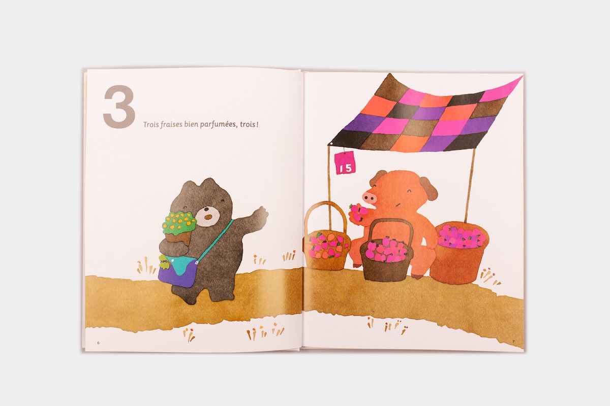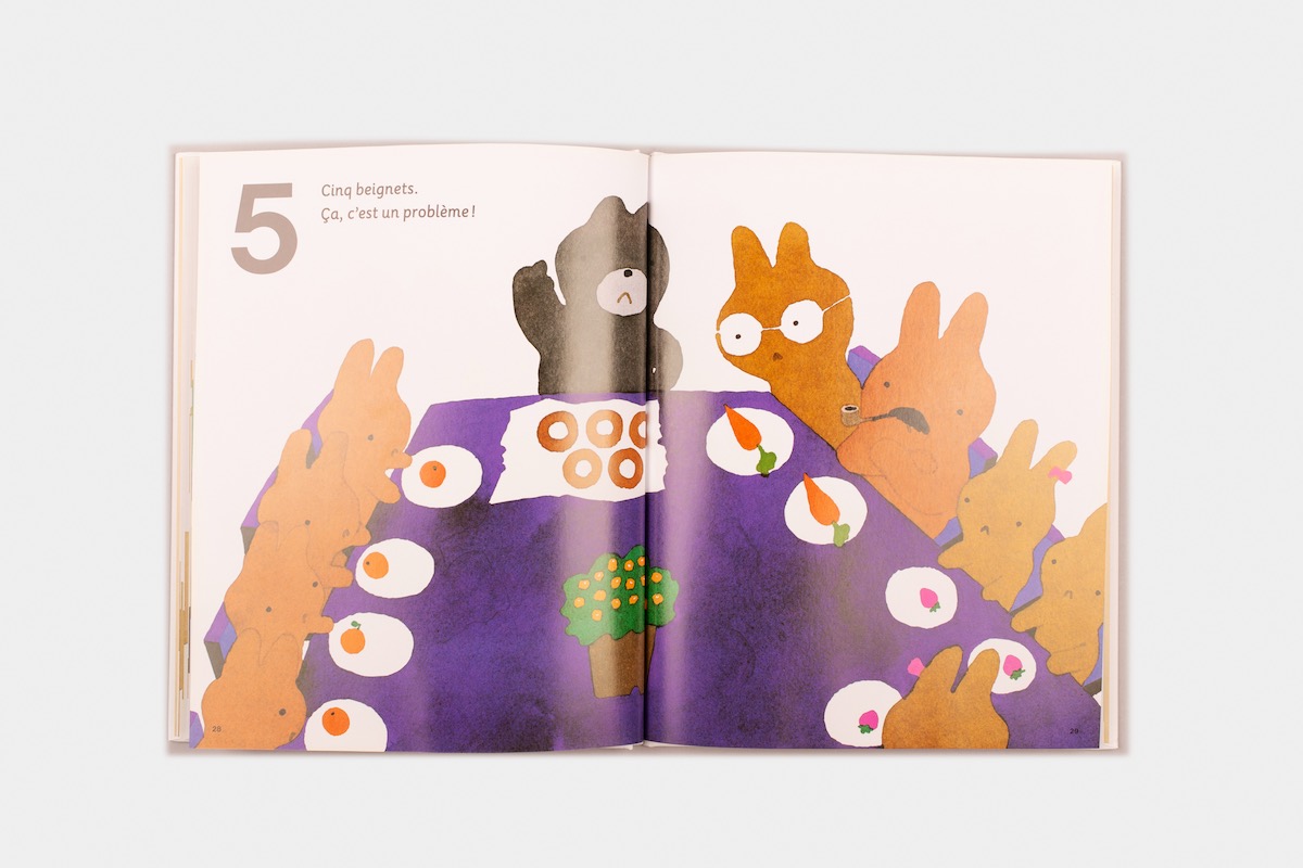 In this book, we learn to count and manipulate numbers through a series of games as we follow the bear's visit to the rabbit's family. We count everything: strawberries, donuts, bus stops, houses, family members.... Then we add them up, subtract them, sort them...