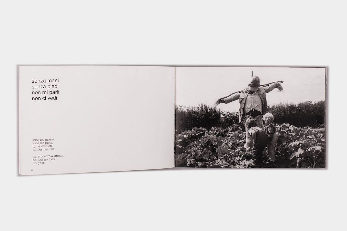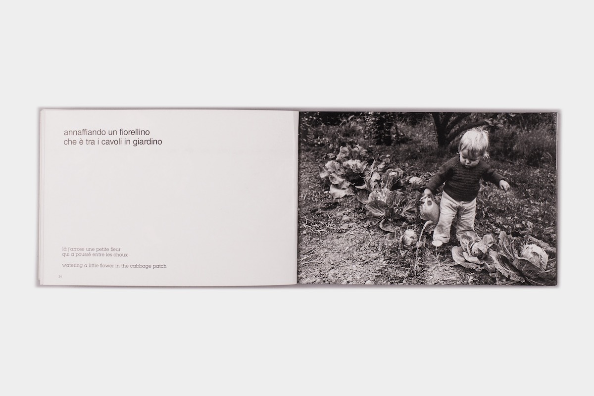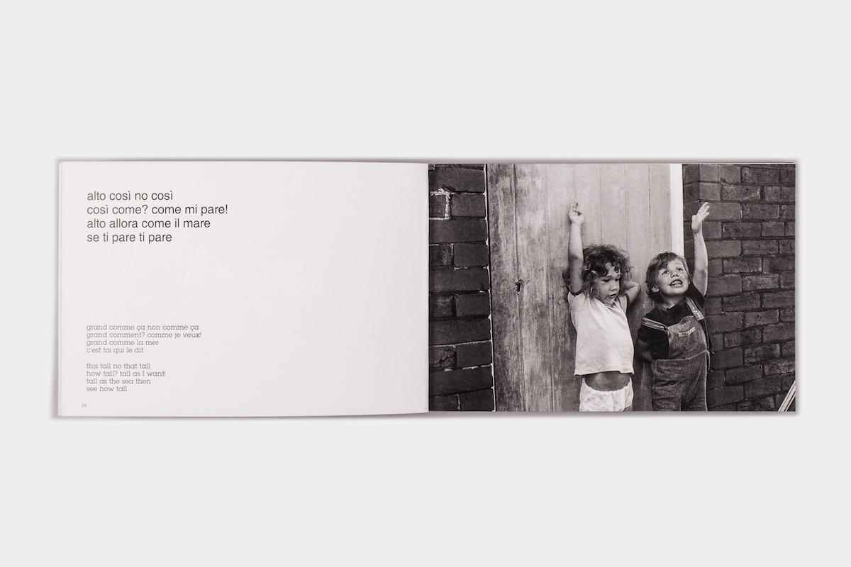 Ciccì Coccò, first published in 1982 by Fotoselex, is one of the first and rare books for children where photography is used. It may be because of this that Bruno Munari was so happy to write the captions and rhymes to go with these poignant pictures taken by Enzo Arnone between the 1970’s and 80’s.