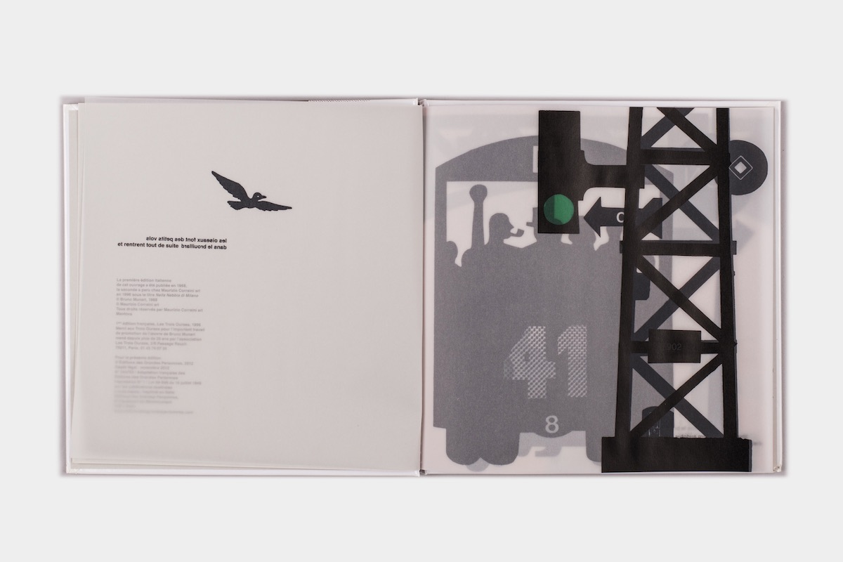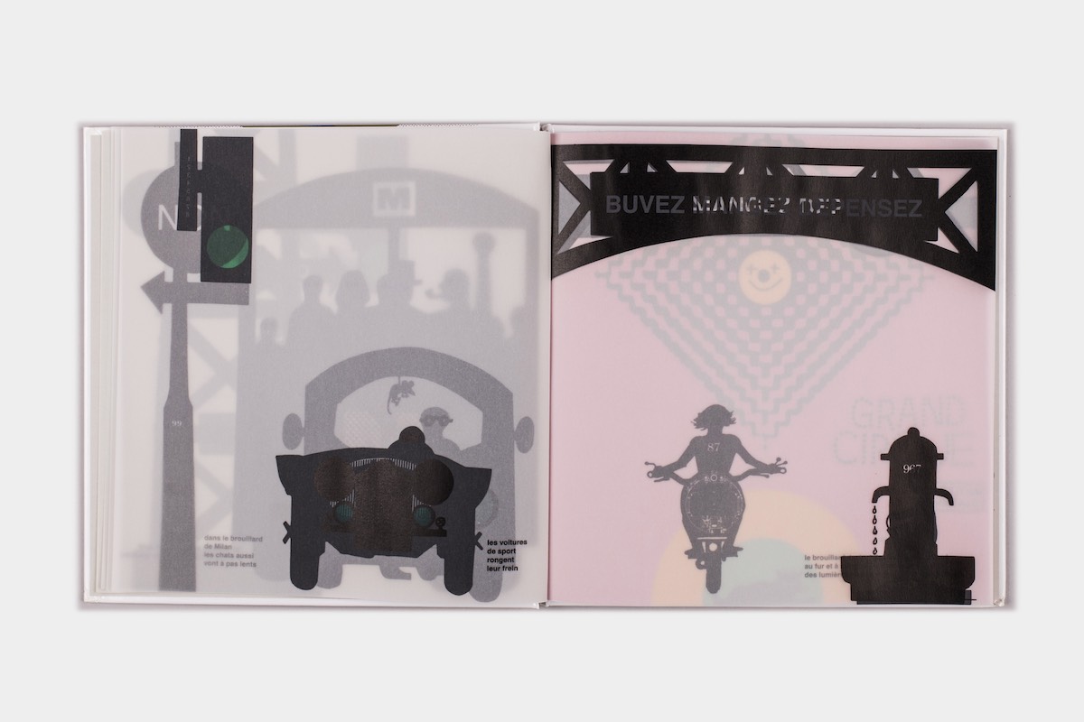 You're travelling through the foggy city of Milan – layers of tracing paper create a poetic sense of moving through the milky mist inside the book. Then suddenly you enter the lively and colorful world of a circus! Fun surprises are awaiting page after page, through many holes and cut-outs.