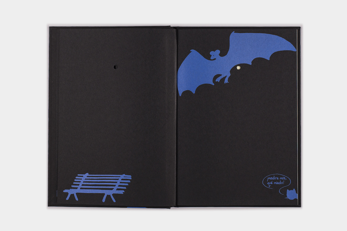 The different types of paper used, simplicity of the images and holes that echo the story lead the reader along the mysterious path of the "darkness of the night".