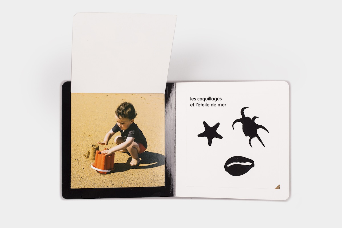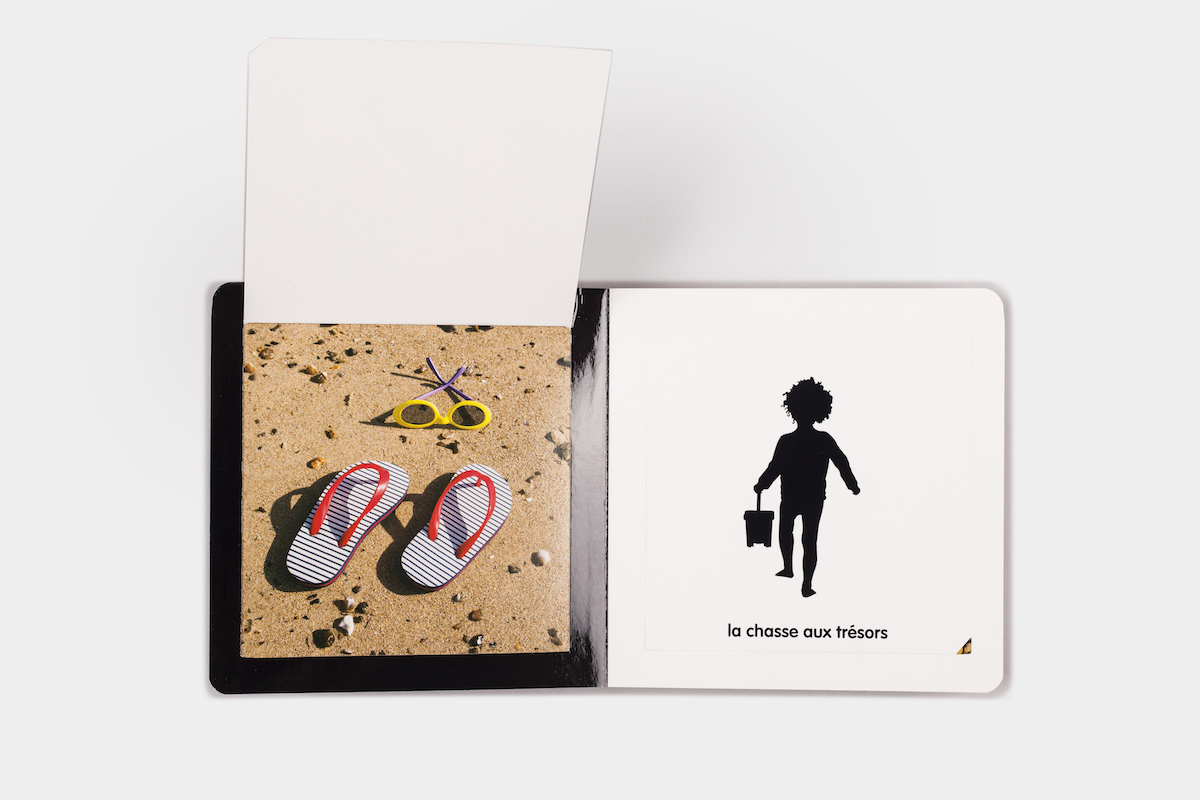 As we guess what's hidden behind the black silhouette on each flap - we discover the sandcastle, the seagull, the fishing boat, the shells, the crab, the lighthouse... the whole seaside world.