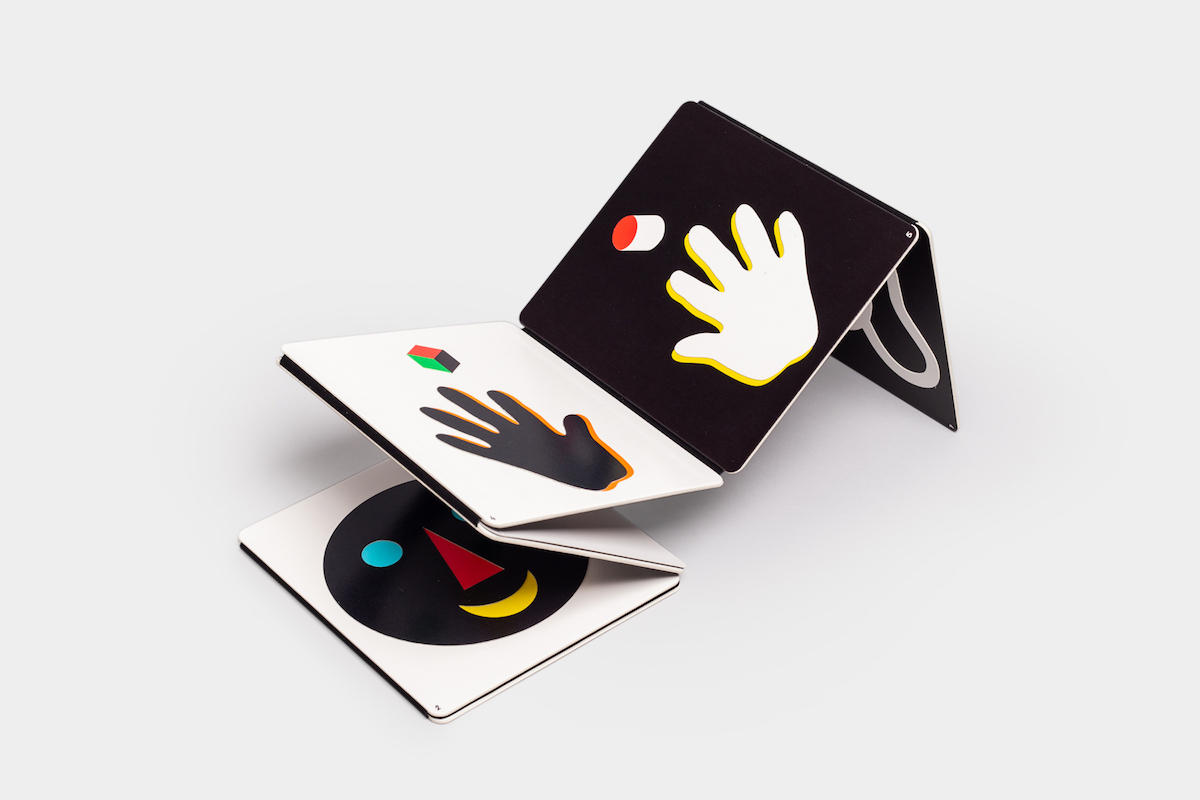 The quintessential baby book, with rounded corners, pages joined by fabric, malleable and resistant, well prepared for a baby's hands.